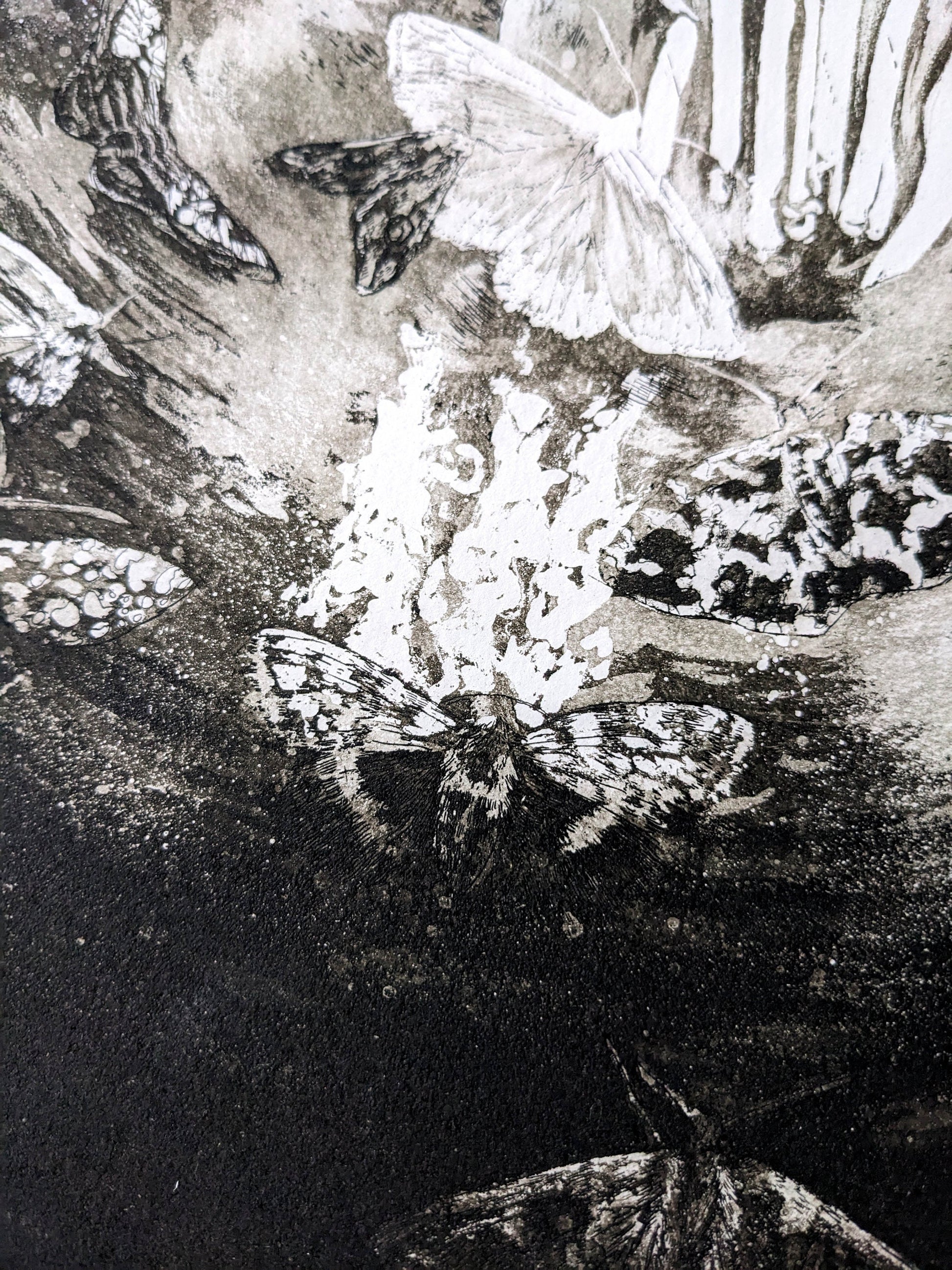 Drawing on the evocative saying "like a moth to a flame", Ignition reflects the artist’s experiences with mental health — capturing the powerful feeling of being surrounded by darkness yet still irresistibly drawn toward the light. The imagery speaks to the enduring pull of hope and transformation, even during life's most difficult moments.