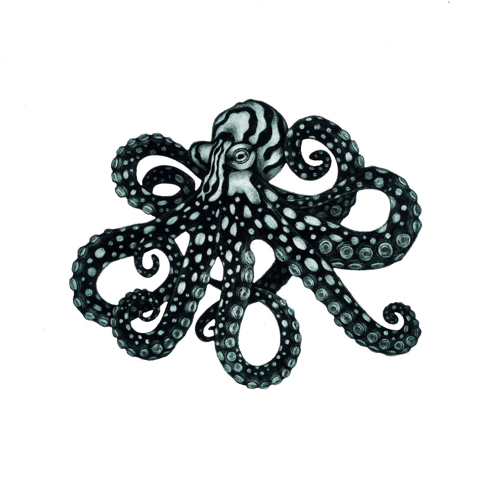 Lost and Found is an award-winning original mezzotint and debossing by artist Rhianna Catt. The plate itself is cut to the shape of the Octopus, allowing the image to be embossed directly into the paper — adding subtle depth and a sculptural quality to the print.